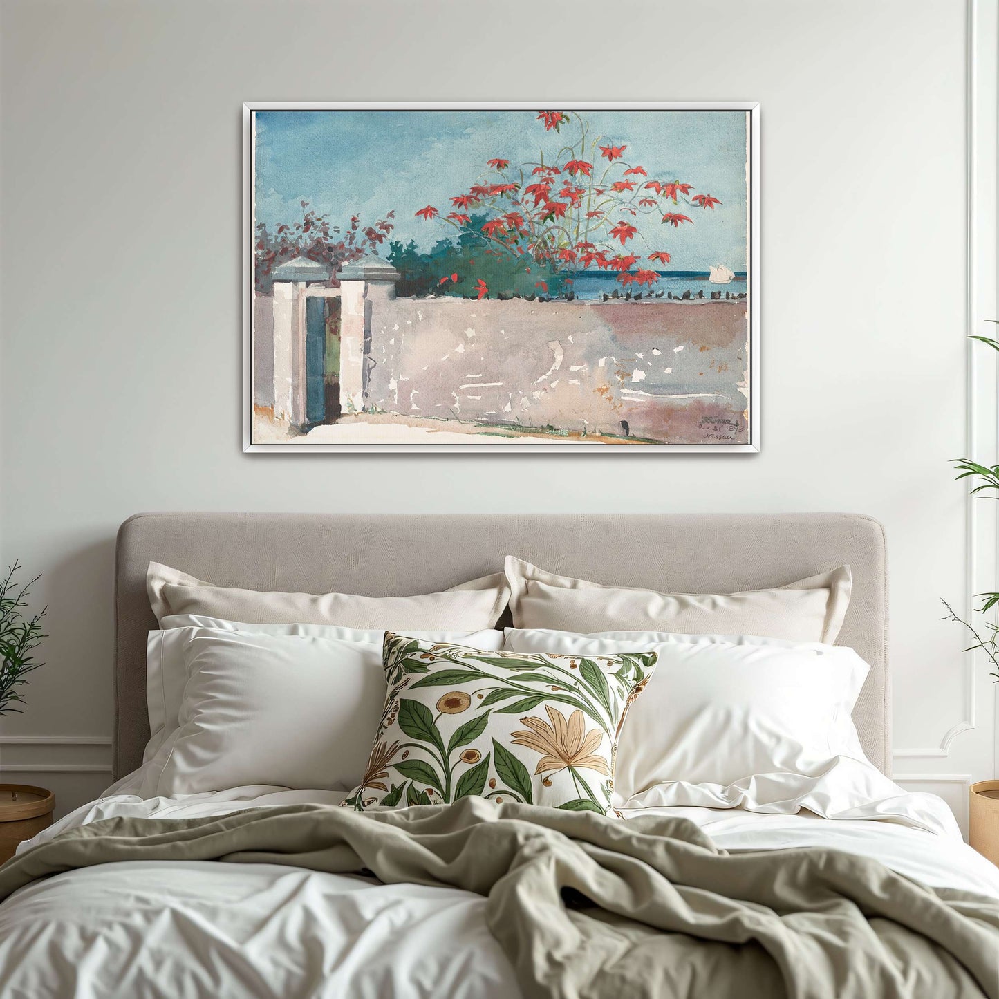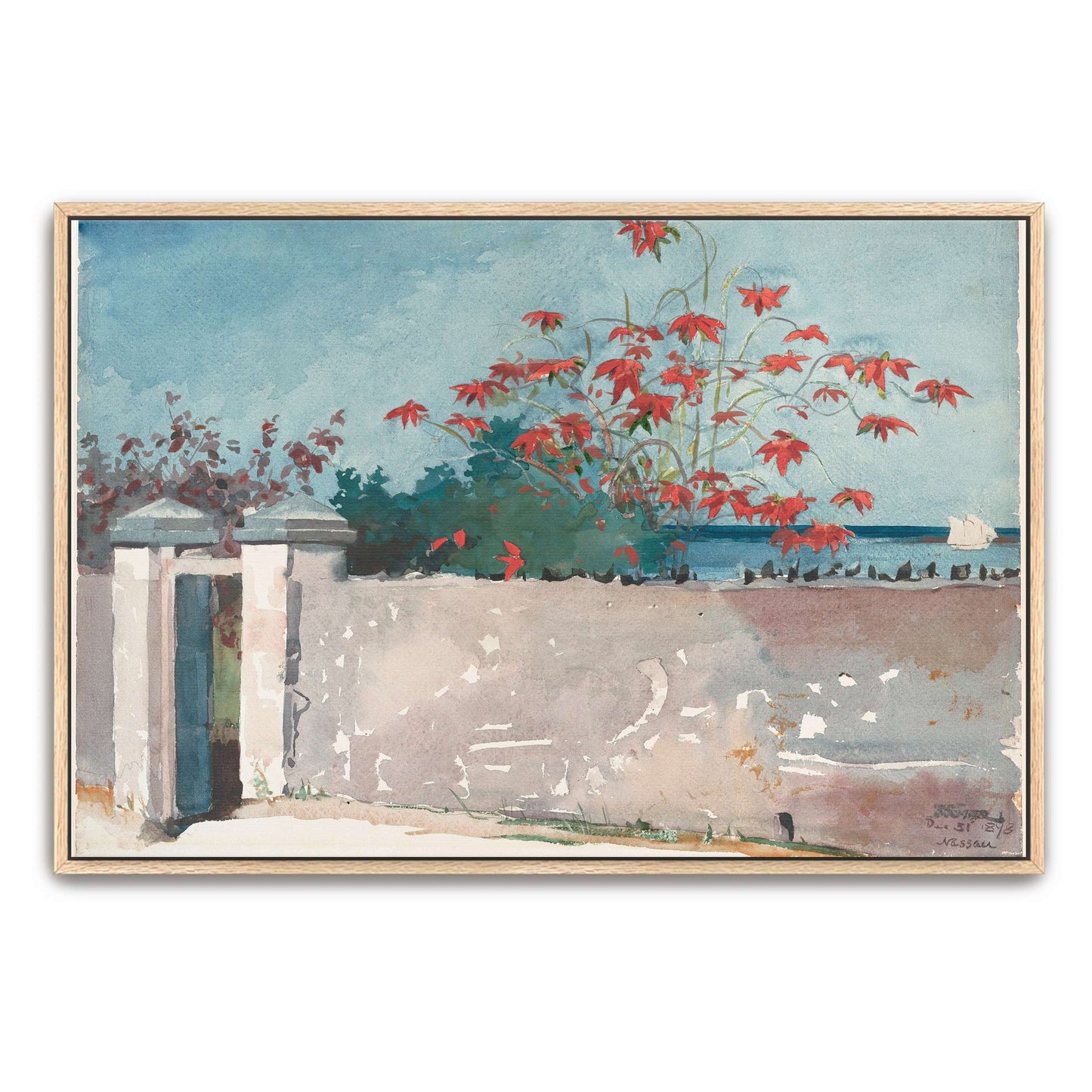 Red Flowers And Wall With Gate In Nassau By Winslow Homer