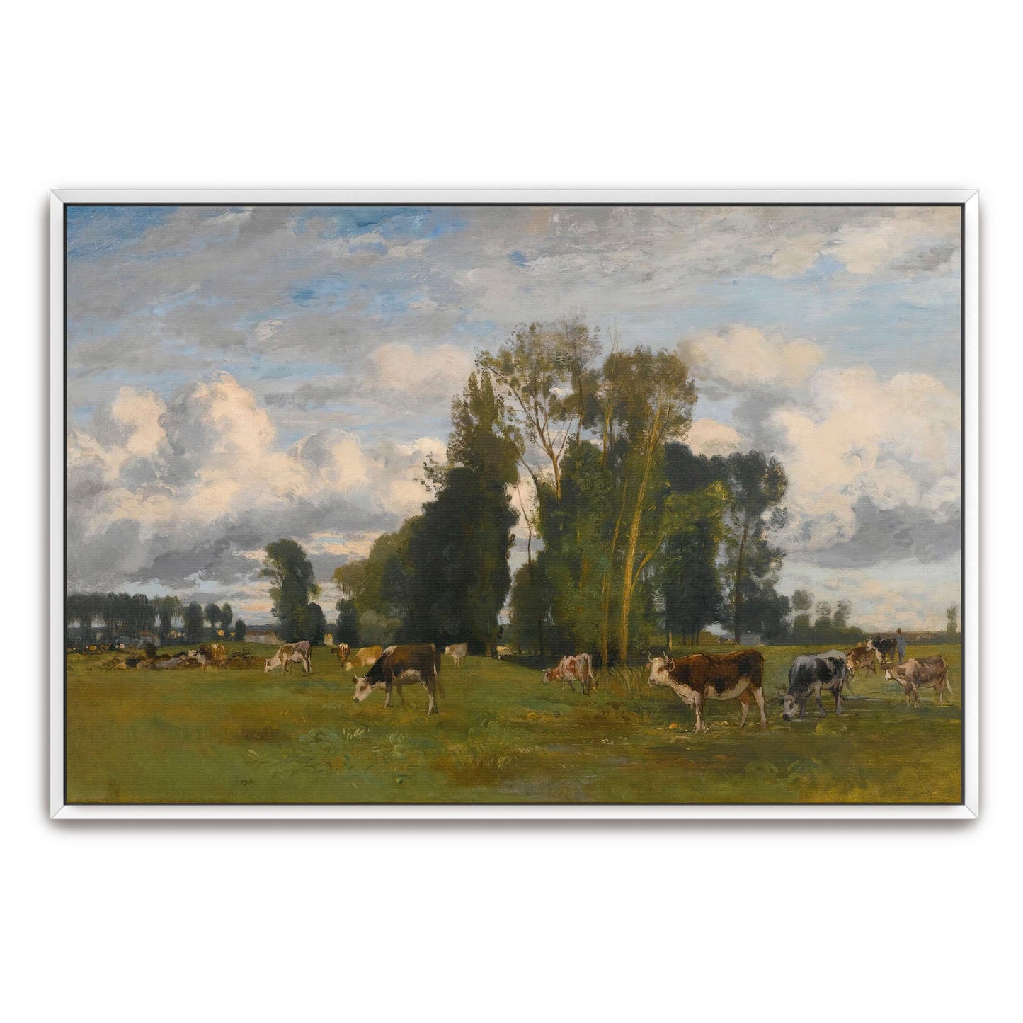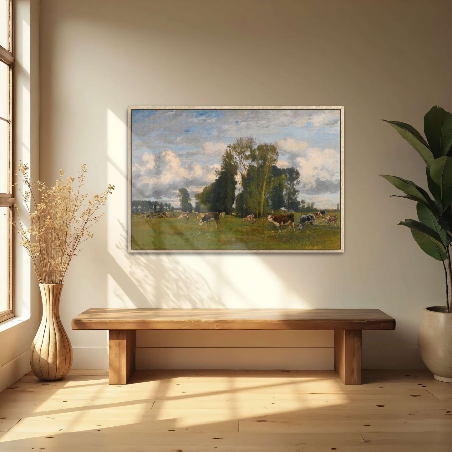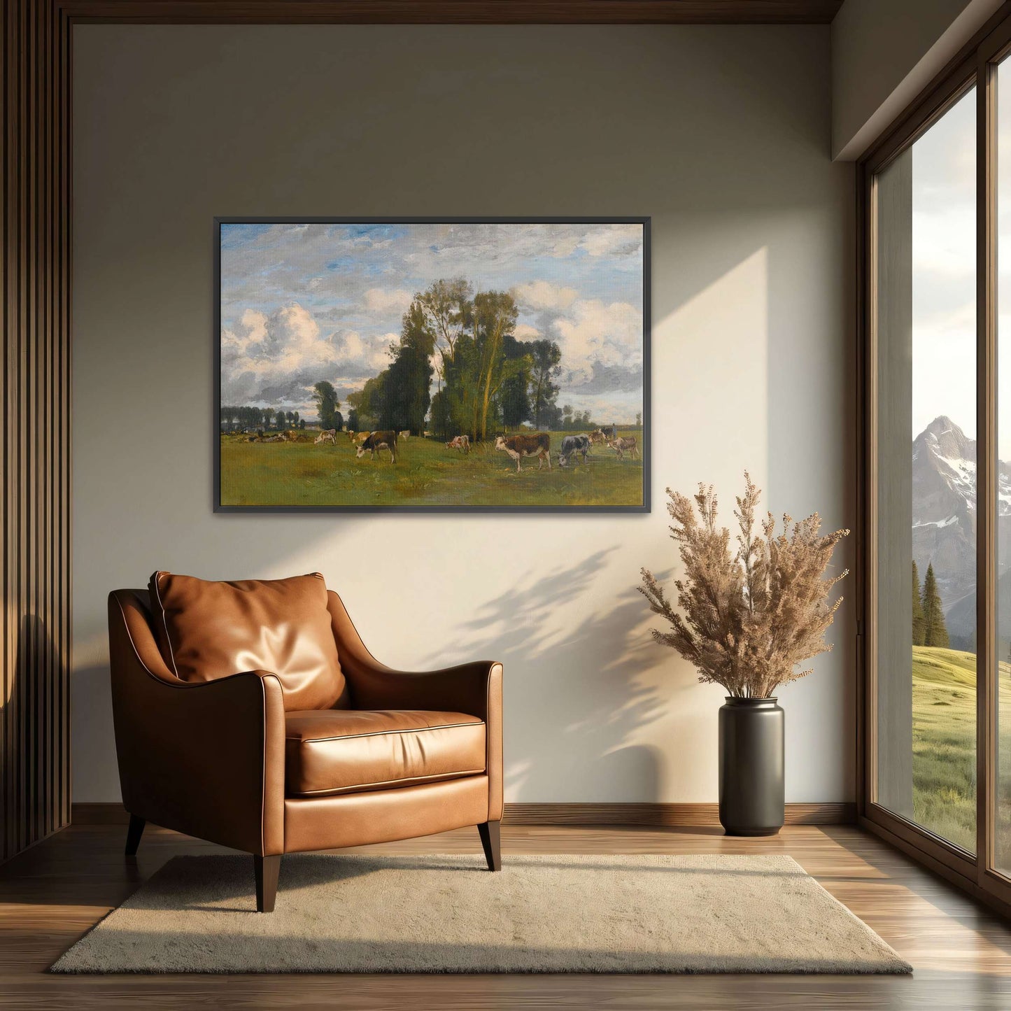 Rural Meadow With Cows Grazing Under Cloudy Sky By Eugen Jettel