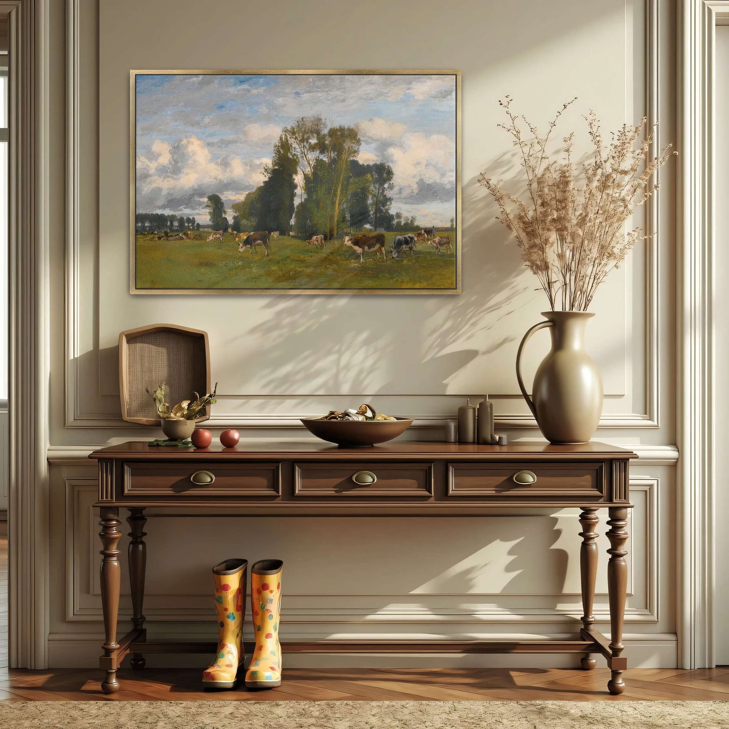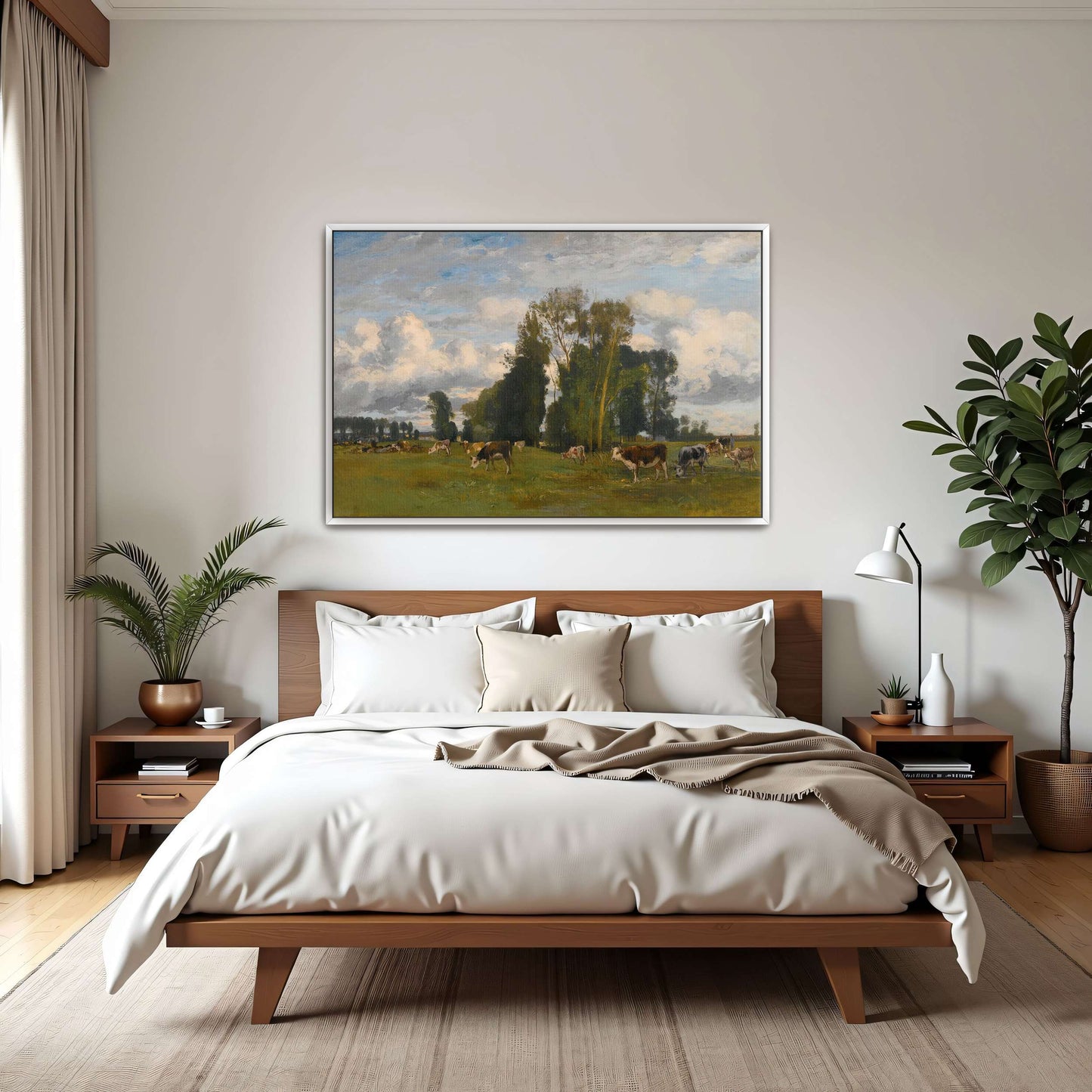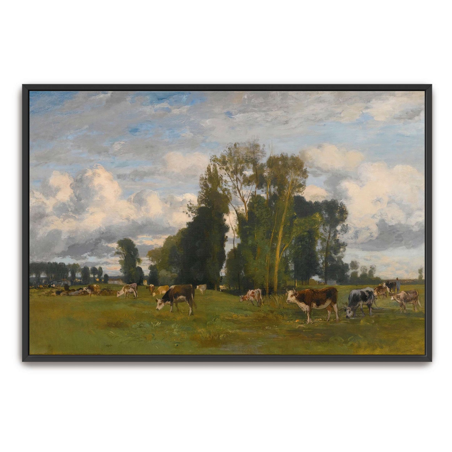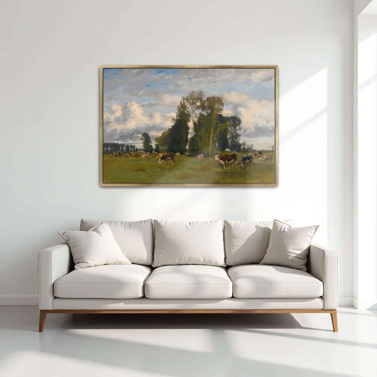 Rural Meadow With Cows Grazing Under Cloudy Sky By Eugen Jettel