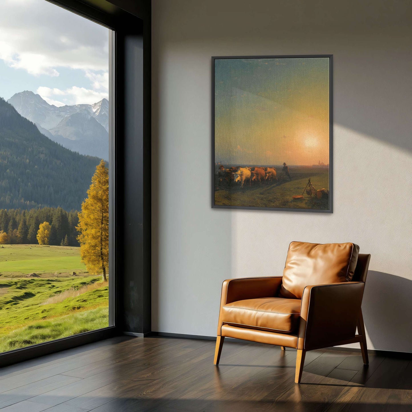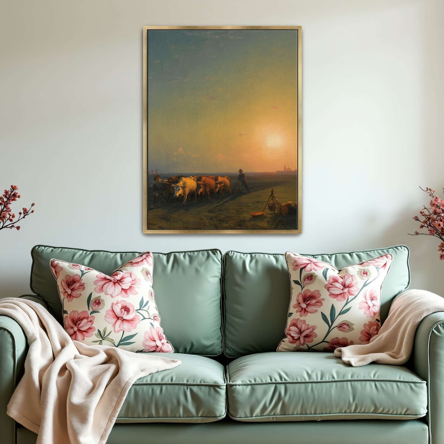 Sunset Landscape With Cows And Farmers By Ivan Konstantinovich Aivazovsky