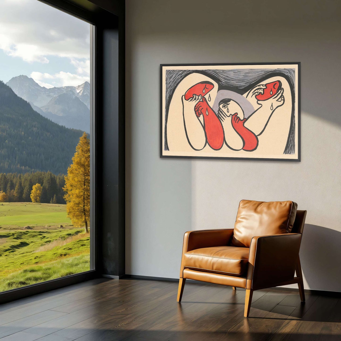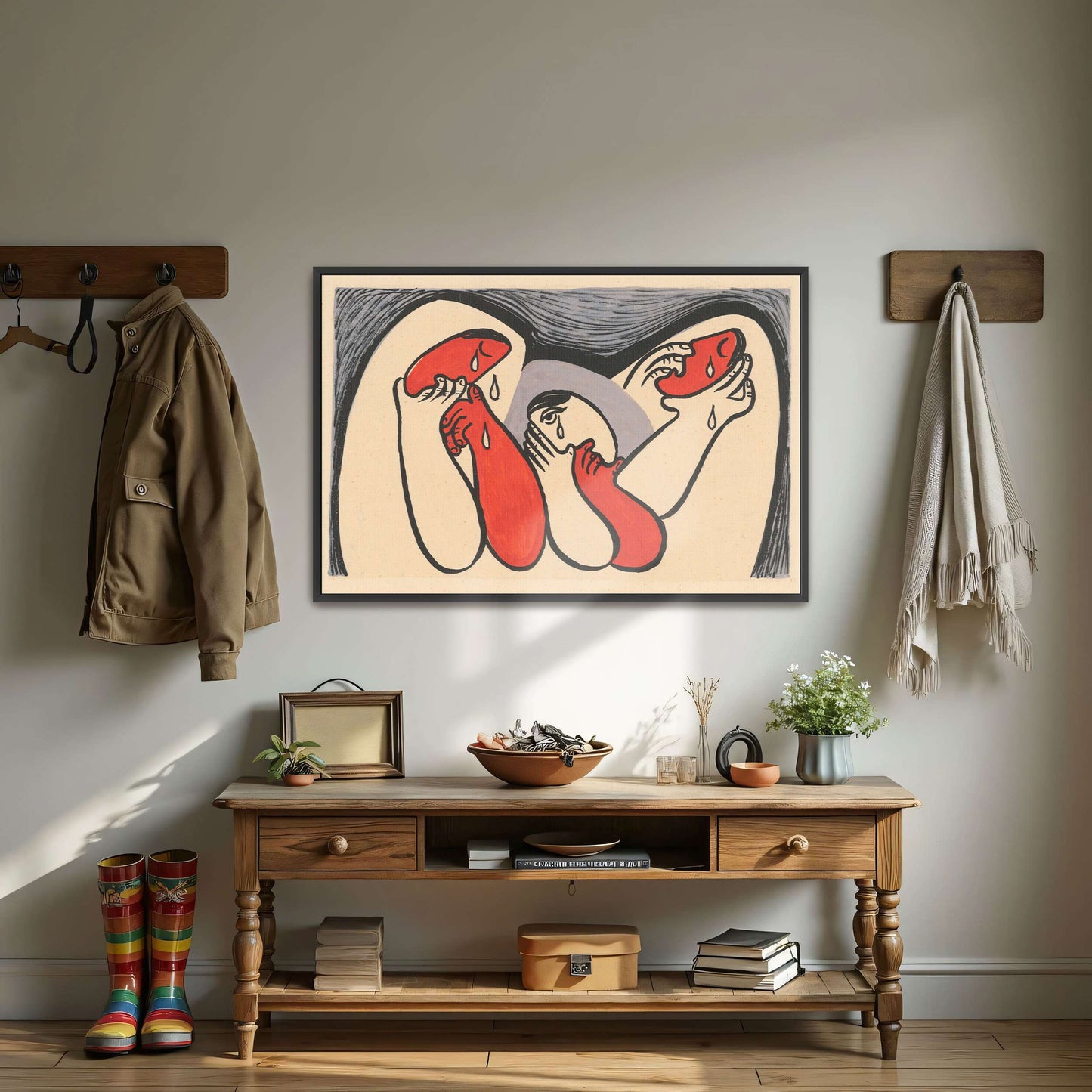 Two Crying Women In Red And Black By Mikuláš Galanda