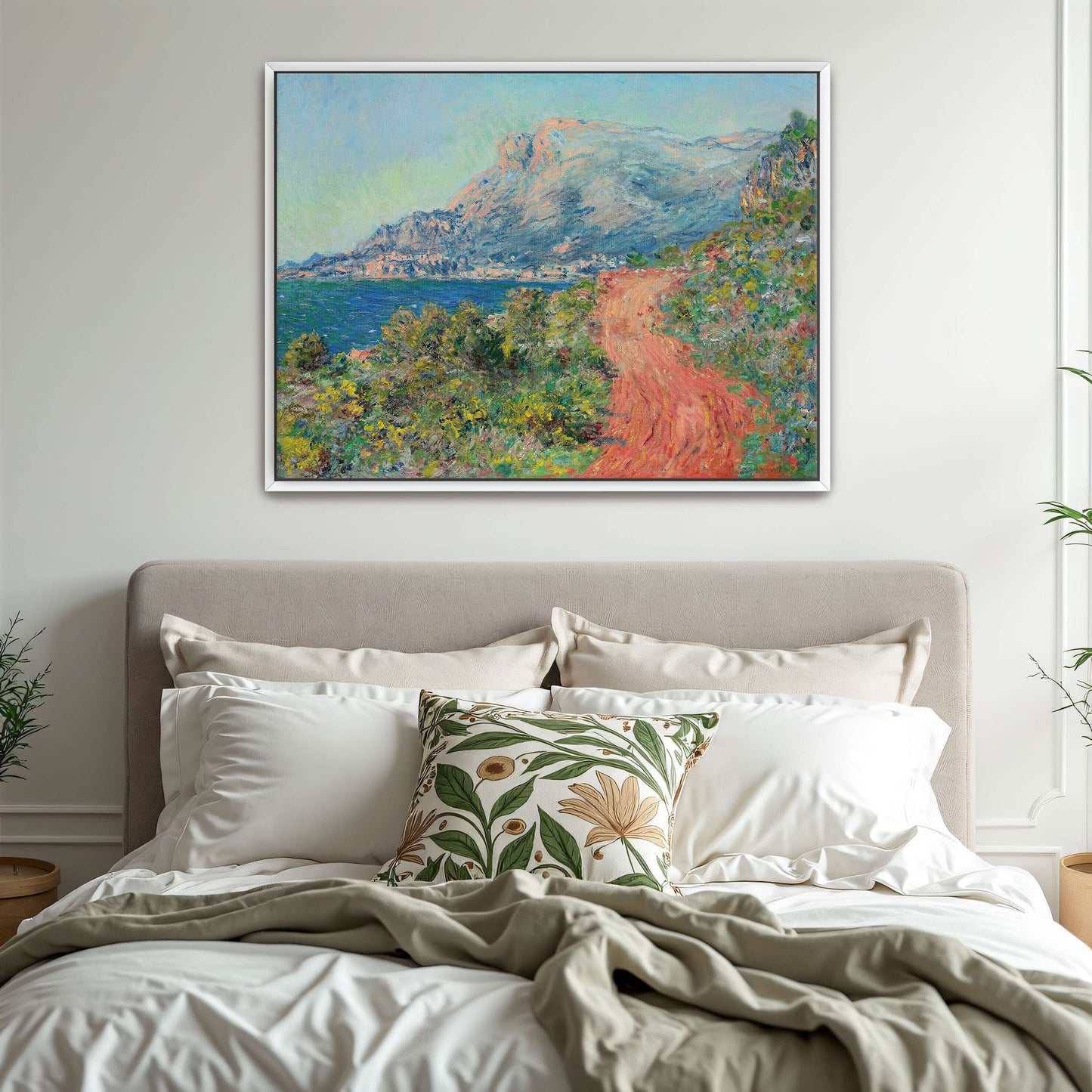 Winding Red Road Through Brush And Mountain Landscape By Claude Monet